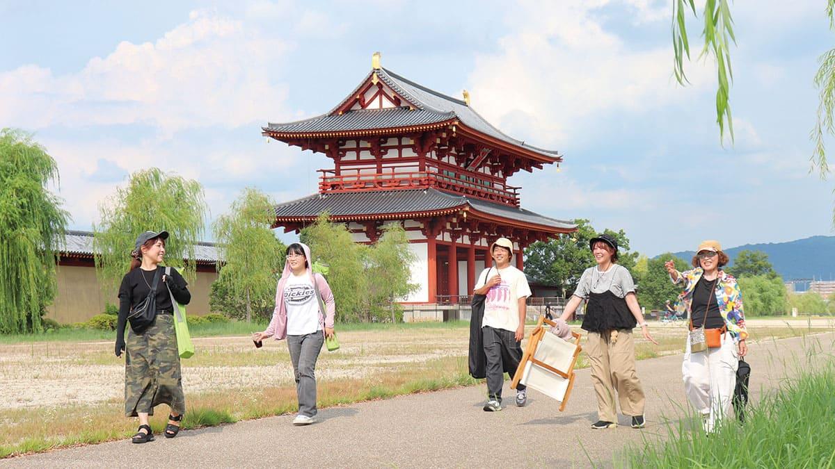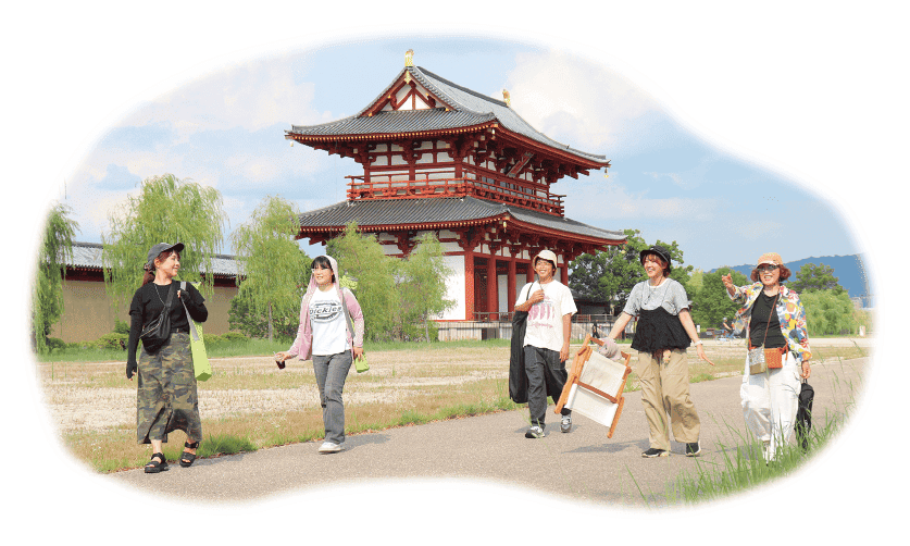2025.10.7 staff 暑さも和らぎ、心地よい秋の風が吹き始めるこの季節。外に出て自然を楽しむ、一番気軽なアウトドア「チェアリング」がおすすめ。Narakko!スタッフ5人で平城宮跡歴史公園でチェアリングを体験してきたよ。 そもそもチェアリングとは? 持ち運びしやすい軽量なアウトドア用の折りたたみ椅子を屋外に持ち出し、公園など好きな場所に置いて座って自由に時間を過ごすアウトドア体験。椅子を置いた場所を一時パーソナルスペースとして楽しむもので、その手軽さからSNSなどで人気を集める。 チェアリングを楽しむ3つのルール 1 装備はなるべく手軽に チェアリングの魅力はその手軽さにあり。装備は極力増やさず、椅子1脚と最低限の持ち物だけで身軽に楽しむのがポイント。 2 周囲の人に迷惑をかけない チェアリングは公共の場や自然の中で行う体験。騒いだり周囲に不快な印象を与えたりしないよう配慮を忘れずに。 3 来た時よりも美しく ゴミは必ず持ち帰り「来た時よりも美しく」を心がけて「クリーンチェアリング」を実践しよう。 アウトドアチェアの選び方 チェアリングは自分に合った椅子選びから。アウトドア専門店以外にも、ホームセンターなどでも豊富にそろう。リクライニングする椅子もある。 収 束タイプ 脚とフレームが中央に集まるようにたためるチェア。展開するだけで簡単に使えて、付属の袋に入れて肩にかけて持ち運ぶことができる。ドリンクホルダー付きのものも ありリーズナブルな 価格帯が魅力。 折 りたたみタイプ 二つ折りにたたみ収納できるタイプ。こちらも開くだけで設営の手間がなく、手軽に使うことができる。背もたれや座面は安定感があり、座り心地を重視したい人におすすめ。 組 み立てタイプ フレームと座面シートが分かれているタイプ。フレームを組み立ててからシートを取り付ける手間はあるものの、包まれるような座り心地。コンパクトに収納できるので持ち運びやすさは抜群。 高さにも注目 高さにも注目 ▼ ローチェア 座面の高さが約30cmで地面との距離が近いのが特徴。足を伸ばしてリラックスすることができる。 ハイチェア 座面の高さが約40cm以上のチェア。立ち座りがしやすく腰への負担が少ないのも魅力。 yomiっこスタッフのチェアリング体験 in 平城宮跡歴史公園 1人1脚ずつを持って平城宮跡歴史公園を探索! 屋外で読書を 楽しみました♥ ▼ ▲ 外で食べるって サイコー♪ アウトドアチェアの 沈み込む座り心地が良いです。 ▼ リクライニングできるチェアでリラックス。 ▼ チェアリングにオススメの場所 椅子を持ち出して座ってみると、いつもの風景の意外な魅力に気づくことも。自分だけのベストスポットを探してみよう。 水 辺で癒やしのチェアリング 川や池など水辺に近い所は美しい景色が楽しめて、癒やし効果も抜群。 大 きめの公園もおすすめ 人の流れや日陰の加減などで場所を移動し、絶好のスポットを探すのもチェアリングの醍醐味。 べ ランダでチェアリング 家の庭やベランダに椅子を出して座ると外出することなくチェアリングを楽しめる。飲み物を片手に、ベランダチェアリングもおすすめ。 快適に過ごすオススメアイテム!100円ショップでもそろう! お気に入りの椅子にアイテムをプラスして、より快適なチェアリングタイムに。100円ショップで見つけた手軽に使えるアウトドアグッズをご紹介。 ドリンクホルダー 椅子のアームレストにクリップ式で取り付けられるドリンクホルダー。スマホなどの小物を置くスペースにも◎。 折りたたみスツール 子ども用の椅子として使えるほか、ミニテーブルや荷物置きとして活躍。ローチェアとの相性が良く飲み物を置くのにちょうど良い高さ。 スタンド付き焼き網 脚が折りたたみ式の小さな焼き網は、ミニテーブルとして利用可能。メッシュなので軽くて持ち運びも便利。 ポールフッククリップ 椅子のフレームに取り付けて使うクリップ式のハンガー。ビニール袋をかけてゴミ袋にしたり、荷物をぶら下げて地面に直置きしないようにもできる。