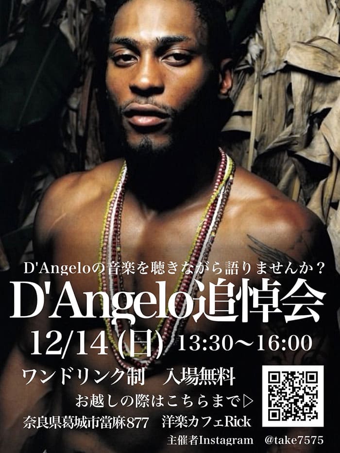 そのD’Angeloを偲び、葛城市當麻の「洋楽カフェ Rick」で追悼イベントを開催します。