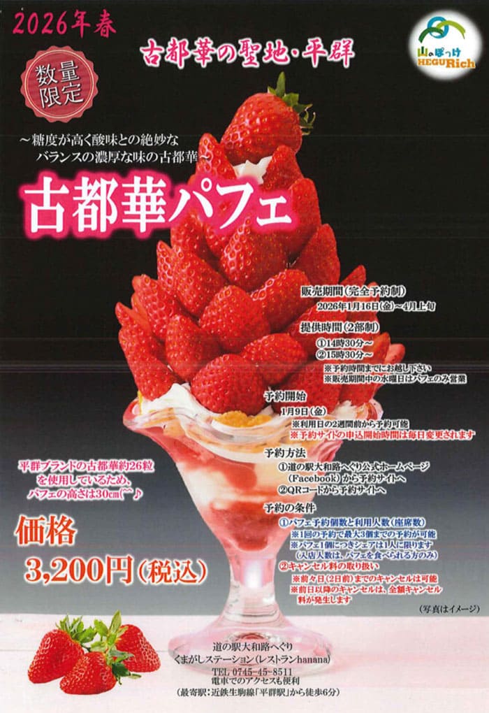 「レストランhanana」では、毎年大人気の古都華パフェ(2026年1月16日(金)〜/要ネット予約)や「とれたて市」では、古都華や、新鮮な野菜や果物、花の産地直売など盛りだくさん。