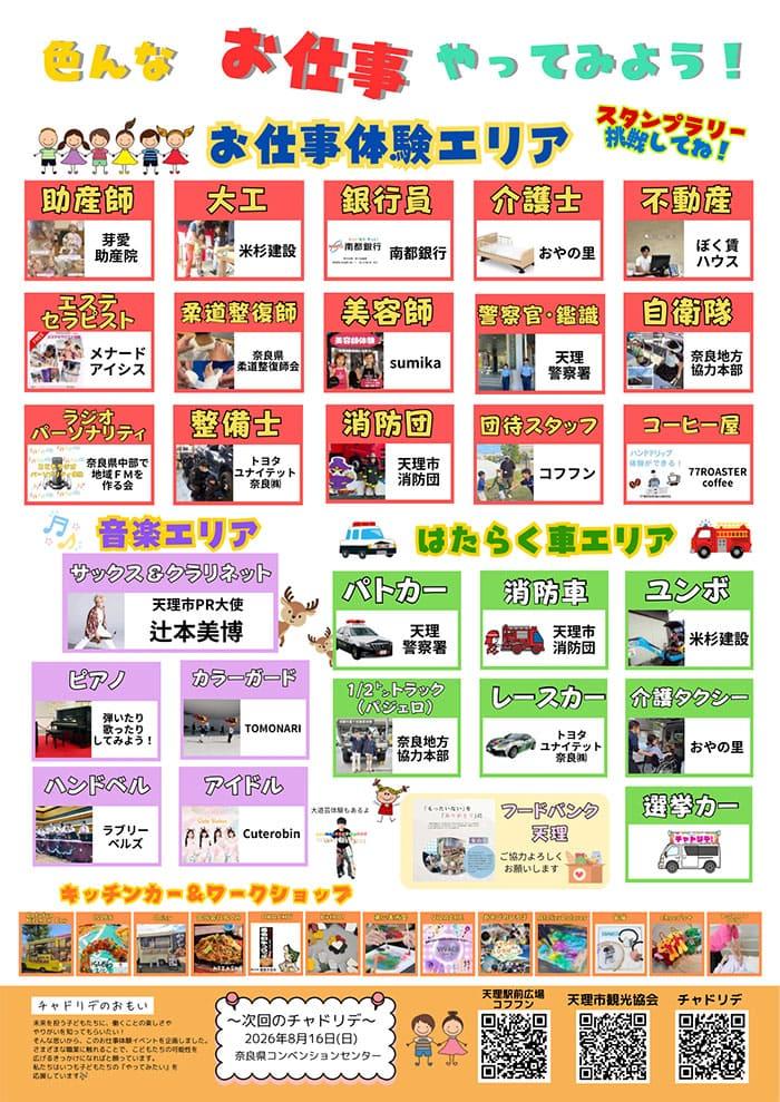 入場料・体験費無料のお仕事体験型イベント『チャドリデ!』が天理駅前広場コフフンにて開催。