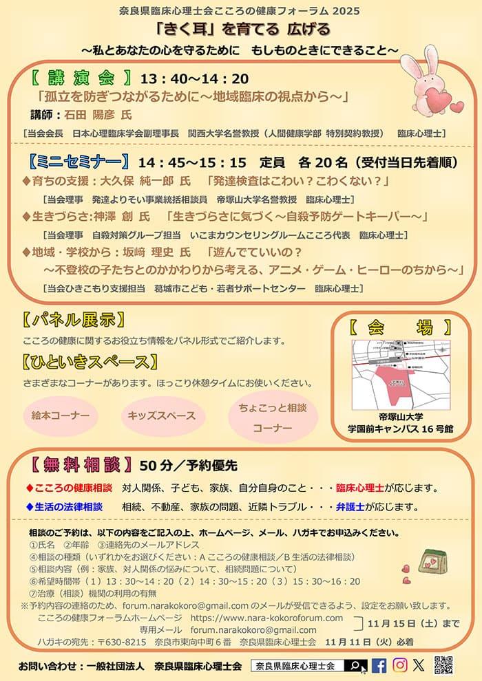 奈良県臨床心理士会が行う多岐にわたる活動を、パネル形式でご紹介します。