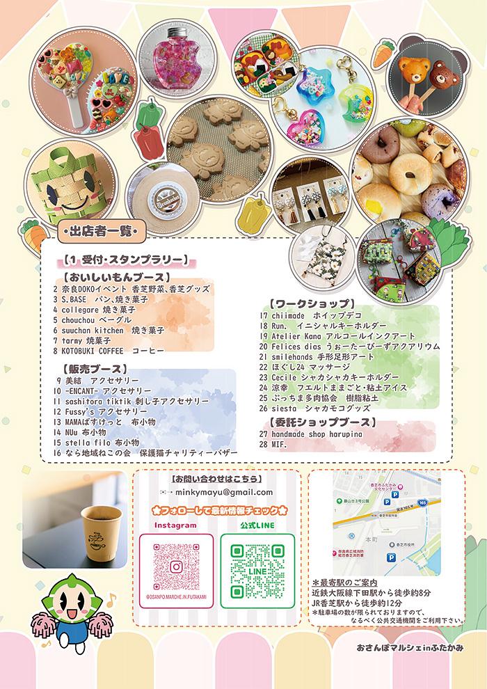 4月12日(日)、ふたかみ文化センターにて香芝市やその近郊で活動するお店やハンドメイド作家が集まるマルシェ『おさんぽマルシェinふたかみ』が開催されます。
