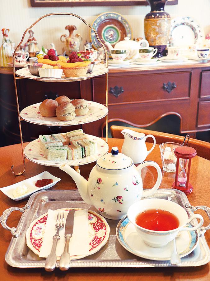 日本紅茶協会「おいしい紅茶の店」認定。自家製のクロテッドクリームを添えるスコーンや、フランボワーズのタルトなどクラシカルな英国式セットを提供する。アンティークのテーブルウェアと一緒に堪能してね。