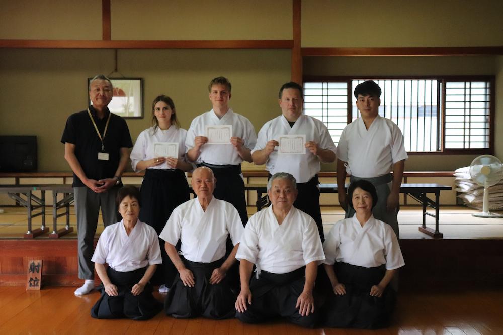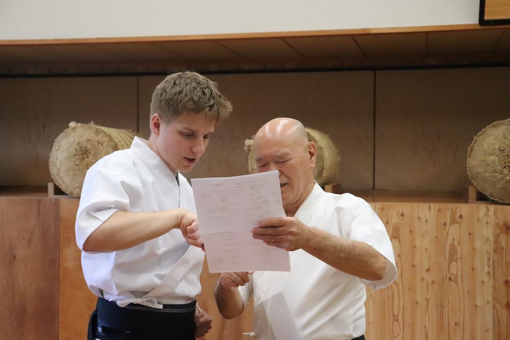 約3時間の体験が終了した後は修了証書が手渡され、全員で記念撮影。ドイツから参加したサム・バウマーさんは「難しかったけれど、丁寧に教えてもらえて、日本の文化を体験できて良かった」と感想を話しました。