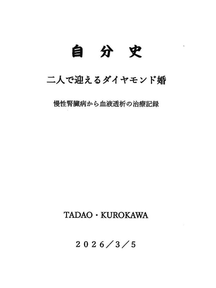 ダイヤモンド婚(2027年3月)記念に、自身の生きてきた足跡を振り返り、闘病日誌(透析)で慢性腎臓病と闘う方々のヒントにしたい。