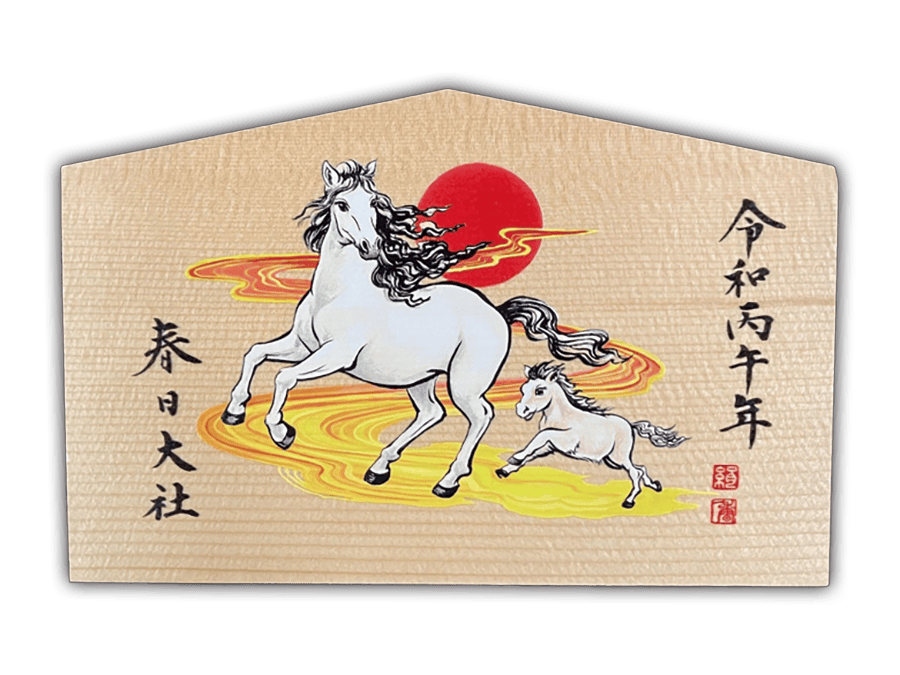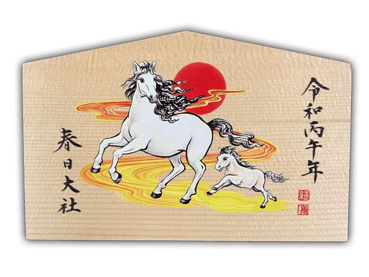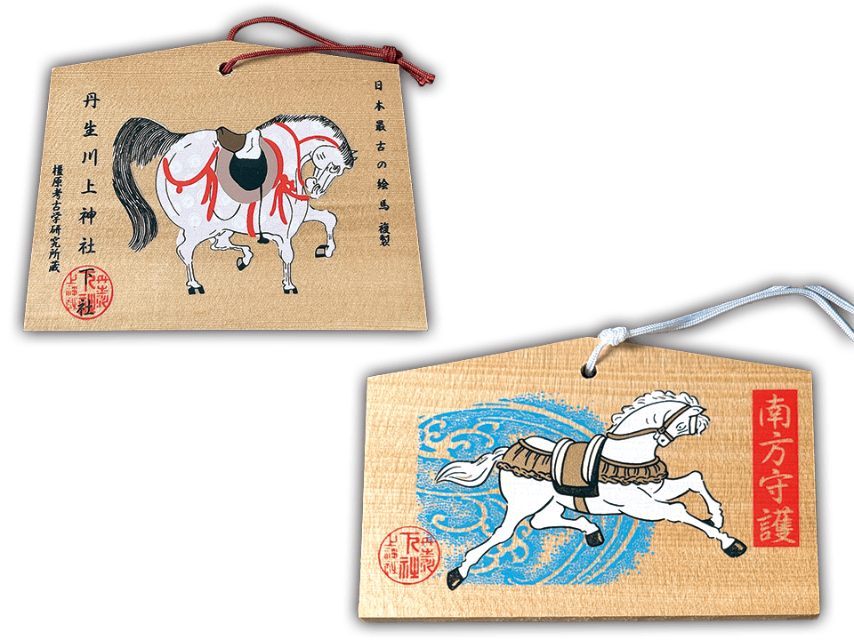 しかし、生きた馬を奉納するには時間や手間、お金がかかることから、土や木、わらなどで作った馬の人形(馬形)で代用することもあり、奈良時代から平安時代になるとさらに簡略化され、板に馬の絵を描いて奉じるように。これが絵馬の起源といわれる。
