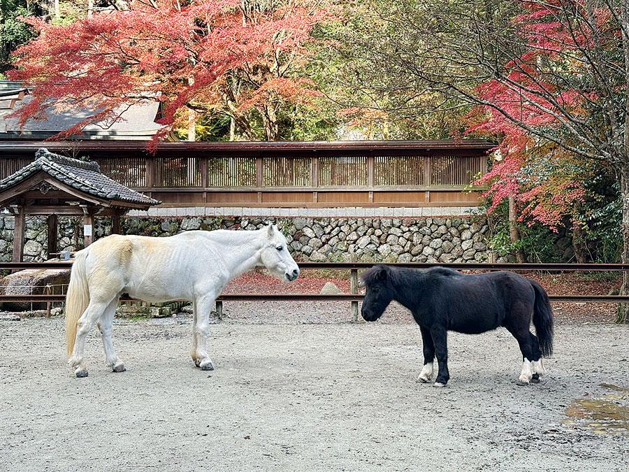 境内では白黒2頭の神馬が仲良く参詣者をお出迎え♪