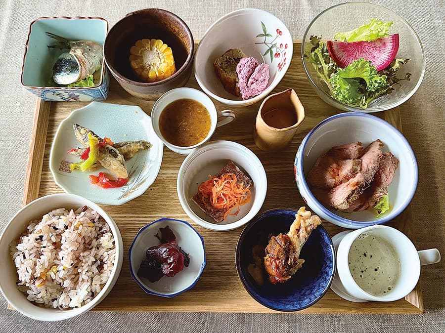 〈斑鳩町〉どこか懐かしい築60年の古民家にカフェがオープン!(ホシノウエノカフェ) 2025.11.26 hiromoto フレンチ×おばんざい×パフェ 築60年の住宅をリノベした古民家カフェ。橿原のImagamI「イマガミ」がプロデュースするランチは、フレンチのエッセンスを取り入れた10種以上の“おばんざい”が楽しめる。抹茶ムースなどが幾層にも重なるパフェも◎ ☆和の趣を残すカフェ空間でくつろいで ランチ 1,650円、プチデザートセットは2,200円 【MENU】 法隆寺パフェ(抹茶) 1,430円(ドリンクセット1,650円)