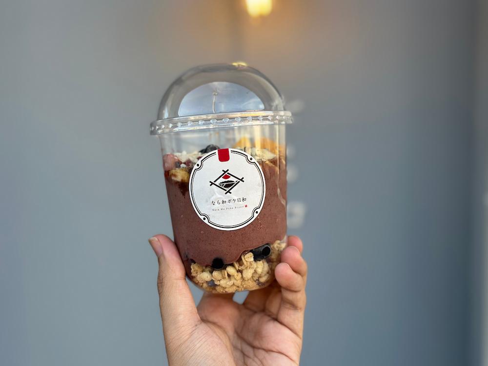 〈橿原市〉約100通りのカスタムで自分好みの丼を楽しもう!『なら和ポケ日和』 2026.1.14 鮎 もう食べた?ハワイアン×和の新グルメ『和ポケ』 奈良県橿原市、中和幹線沿いに、ハワイアングルメ・ポキ丼に和のエッセンスを加えた「和ポケ」専門店『なら和ポケ日和』がオープンしました。 和ポケは具材数に応じたプランが4つあり、トッピングとソースを好きな組み合わせで楽しめて、そのバリエーションはなんと約100通りもあるんだとか! メインはサーモンやマグロ、タコなど6種類の海鮮。サブは赤玉ねぎ・人参・キュウリが固定で、野菜を中心に14種類が用意されています。 オプションで具材を追加することも可能で、卵黄をのっけたり、ご飯を大盛りにしたりすることもできます。 ソースはごま油ベースの香り高い韓国風とサルサっぽいスパイシーソースの2種類。どちらも海鮮にはピッタリなソースなので、辛いか辛くないかで選ぶと◎ ポケ丼は具材とご飯を混ぜて食べるのがオススメ。その方がタレもよく馴染んでまた食感もより豊かに楽しめます。鯛だし(イートインのみ)をかけても抜群にうまい! 和ポケ 1,320円~ テイクアウトもできるよ! スイーツもアサイーが980円で楽しめるほか、大和高田市にある姉妹店「静カフェ」で人気の芋ブリュレもこちらで食べられるのでお試しあれ! アサイー 980円