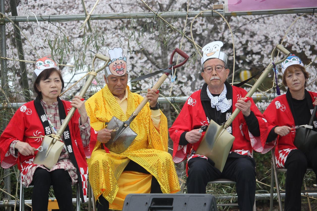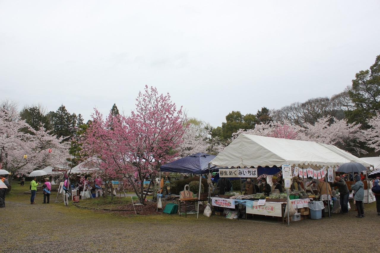 「今年はクラウドファンディングにも挑戦。さくら祭が今年も開催でき、ご支援ご協力に感謝しています。今日はあいにくの雨ですが、明日5日は天気も良さそうです。桜満開の柳生へぜひお越しください」と、主催する柳生観光協会の大東正人会長。