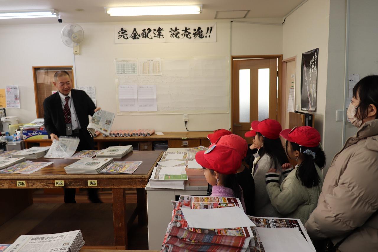 去る2025年12月10日に、奈良市立伏見南小学校の2年生6名が、生活科「町たんけん」の校外授業で、読売センター奈良西ノ京(奈良市宝来3丁目)を訪問。新聞販売店の仕事を見学体験しました。今年で2回目となります。