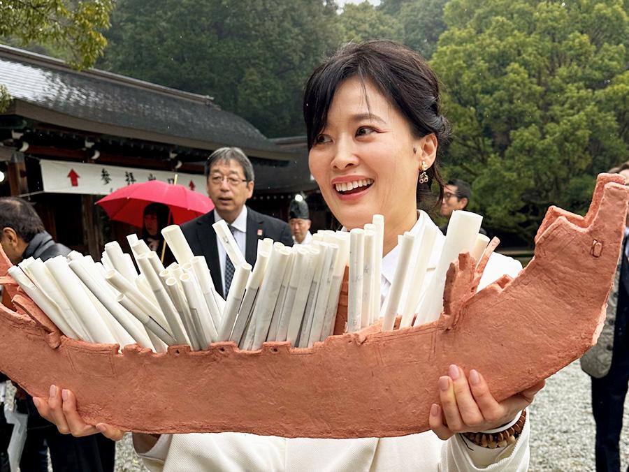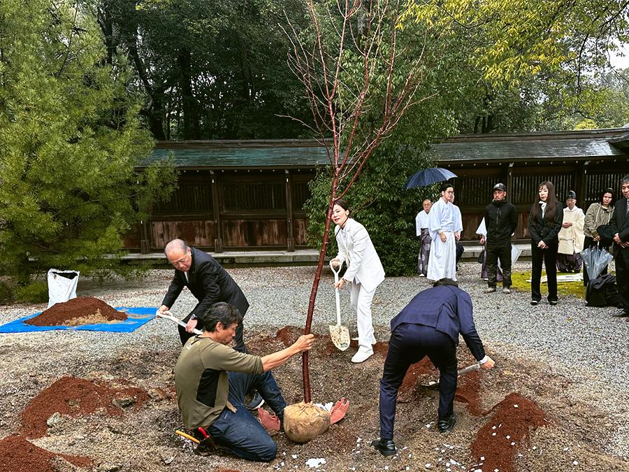 〈橿原市〉橿原神宮で未来への願いを奉納し、桜を植樹「予祝御祭」 2025.12.26 staff 書家・紫舟さんらが「予祝御祭よしゅくおんまつり」 橿原神宮で、未来への願いを奉納し、桜を植樹 冬至の12月21日、書家・芸術家として活躍する紫舟さんらが「予祝御祭」と称し、橿原市の橿原神宮で、未来への願いを奉納し、桜の植樹を行う事業を開催した。 これは紫舟さんの、未来への願いが叶ったことと脳の記憶に刻むことで、前向きに未来に希望を持って生きよう、過去の失敗や絶望さえ希望への足掛かりととらえようという、未来に希望を見出すワークショップを形にしたもの。一般社団法人にほんのことなら代表・別所史さんらと共に呼びかけ、県内外の約50人が願いを叶ったこととしてのお礼をしたため、ご祈祷を受けた後に、境内で桜の植樹を行い、根元に皆の願いを埋めた。 紫舟さんは「この体験が記憶に残り、さらに桜が開花することで、しっかりと未来への希望につながっていくと思います」と語っていた。今後も別所さんらと「予祝御祭」を継続していくとのこと。