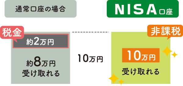 国が認めた、もうけに税金がかからない投資用の箱(口座)です。普通は売却等で利益が出ると約20%が税金で引かれますが、NISA枠を使うと非課税(税金ゼロ)!