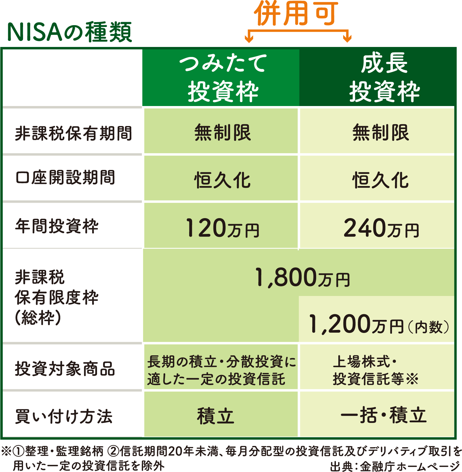 つみたて投資枠成長投資枠を見比べる