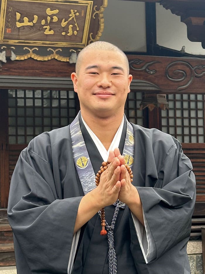 小さい頃からたまに法要に出たり、父について回ったりしておりましたが、高校まではひたすら水泳に打ち込みました。大学は佛教大学に入り、1年生の時に「学寮」と言って大本山金戒光明寺の寮に入り、朝お勤めをしてから大学に通う生活をしました。僧侶になるための第一の修行でした。修行中は当然スマホは使用禁止、土日も朝のお勤めとして読経や掃除がありました。夜は21時が門限で、21時から22時までが勉強の時間です。新入生歓迎会などもなく、夜遊びもできず、周りがうらやましいなと思いましたが、2年生からは自由となり、家から通いました。3年生の12月に加行を受けて、晴れて僧侶になりました。