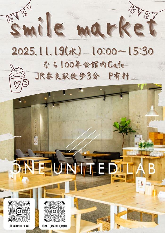 参加型イベント ワークショップ 〈奈良市〉ママ&キッズ向けイベント『smile market』(11/19) 2025年11月19日(水) ONE UNITED LAB(なら100年会館内カフェ/奈良市)