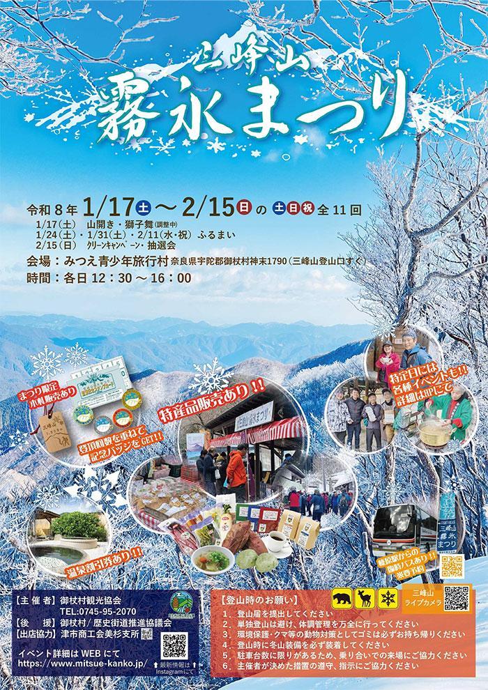 参加型イベント 屋外イベント 〈御杖村〉登る!温まる!食べる!「三峰山霧氷まつり」開催(1/17〜) 2026年1月17日(土)〜2026年2月15日(日) みつえ青少年旅行村(御杖村/三峰山登山口すぐ)