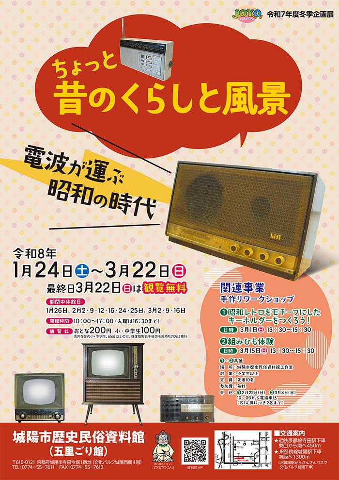 展示・展覧会 ワークショップ 〈城陽市〉冬季企画展「ちょっと昔のくらしと風景-電波が運ぶ 昭和の時代-」(1/24〜) 2026年1月24日(土)〜2026年3月22日(日) 城陽市歴史民俗資料館(五里ごり館)