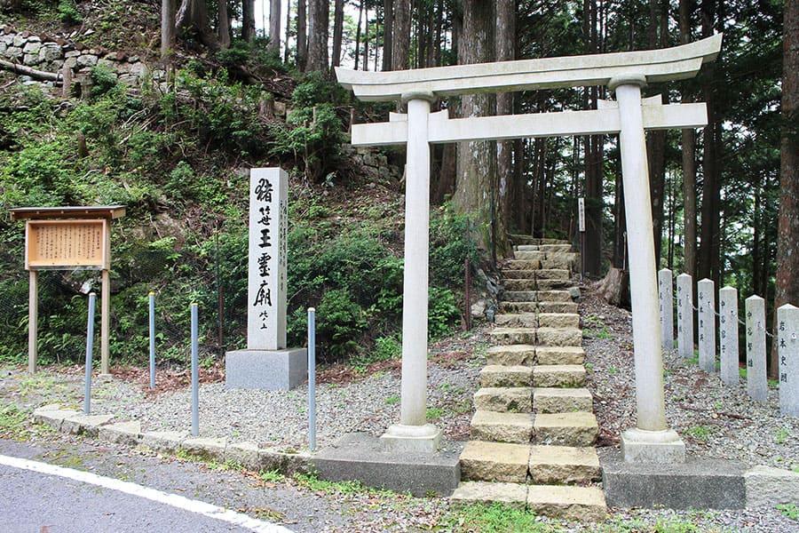 さて、今回はあまり期待せずに伯母峯に行ってみました。国道169号線の和佐又トンネルの南の入り口の横の道(東熊野街道)に入ると、途中になんと「猪笹王の霊廟」がありました。立派な鳥居に「猪笹王霊神」と書かれた案内板もあり、ご紹介しました猪笹王の伝説が書いてあります。