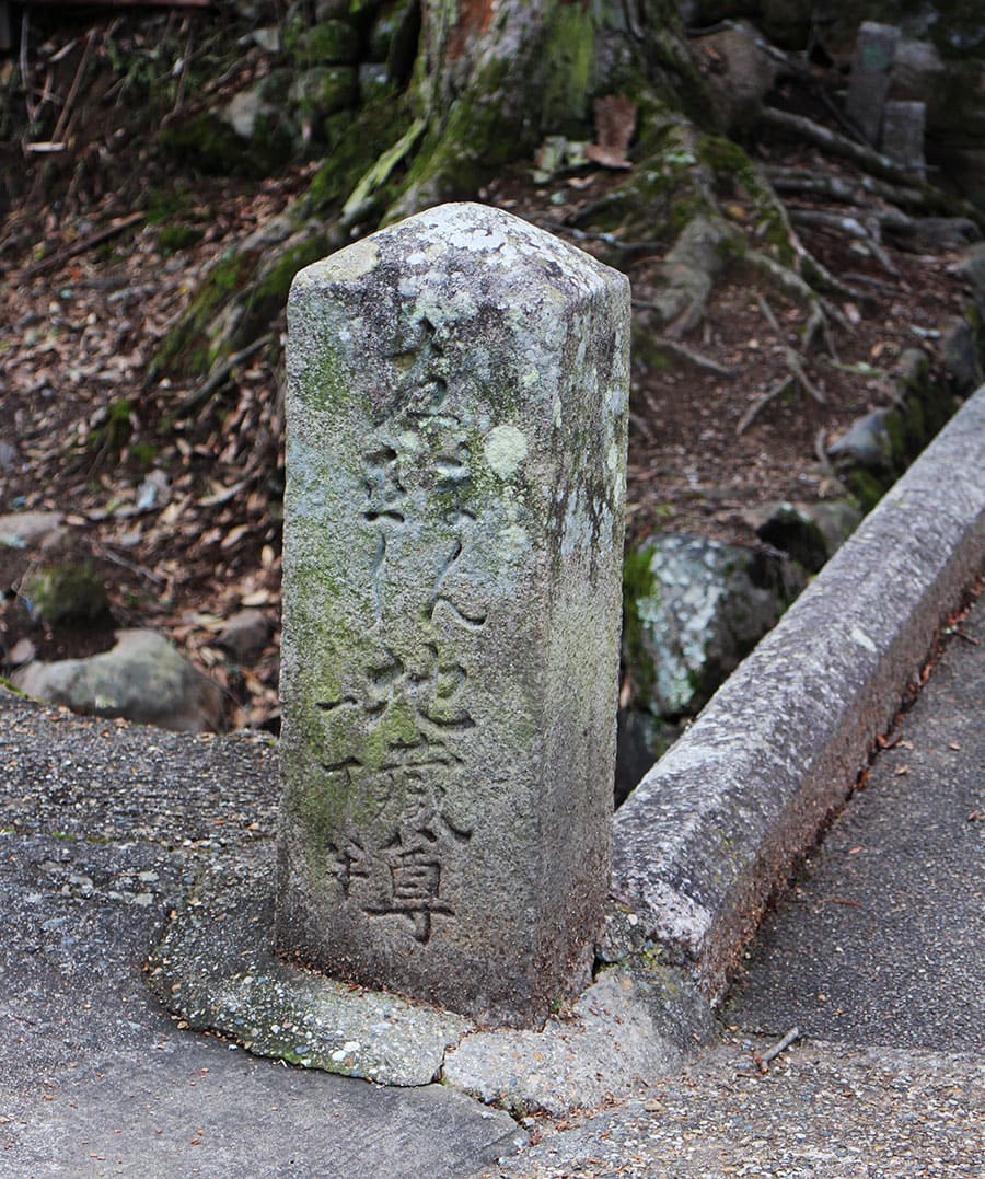 最初に向かったのは東大寺二月堂。道が二つに分かれていて、右は二月堂、左はまんなおし地蔵への道です。ちゃんと分かれ道に「左 まんなおし地蔵 一丁半」と書かれた道標があります。一丁半というと160メートルぐらい。たしかにそれぐらいの距離の坂道を上ると、石の柵で囲まれたお地蔵さんがありました。